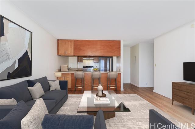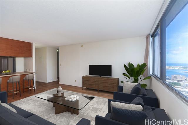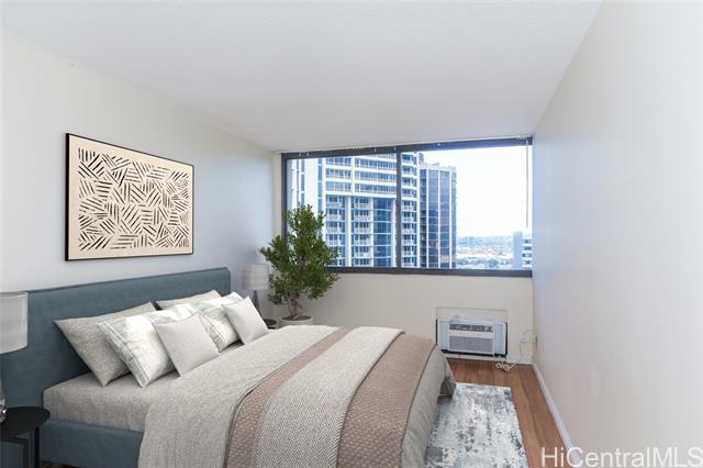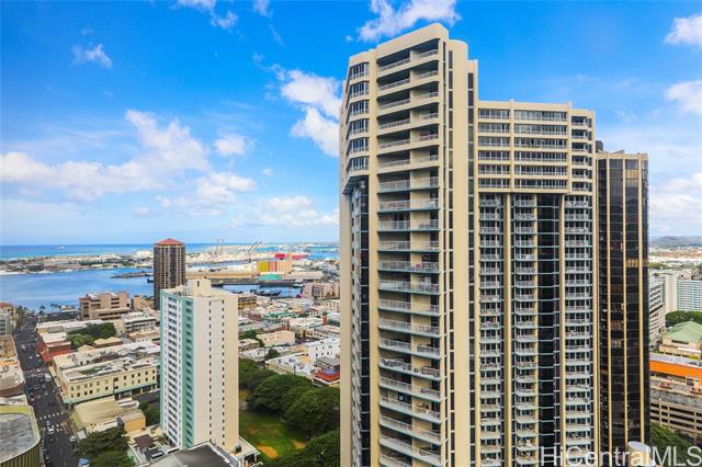 - HIGH FLOOR, CORNER UNIT, WITH FANTASTIC VIEWS AND A CONVEINENT LOCATION. Renovated 2-bed, 1-bath unit in Kukui Plaza featuring newer laminate flooring, newer kitchen cabinets and appliances, newer bathroom vanity. WASHER AND DRYER IN UNIT; plus community laundry area is also available. Walking distance of a variety of stores and eateries in and around Downtown and Chinatown and a short drive to the freeways, Chinatown, Kakaako and Ala Moana Beach. Amenities include a BBQ area, pool, meeting room, expansive common area and on site security, making it a convenient and enjoyable place to live. There is a sandwich lease of $12.50/year until 2048. Seller will pay off sandwich lease with an acceptable offer.