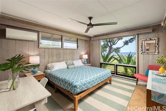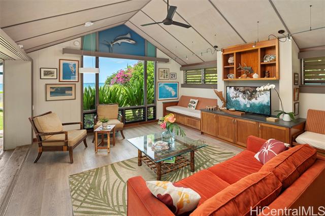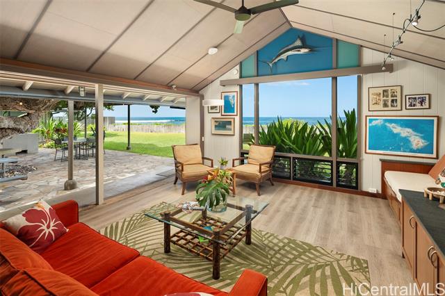 - Welcome to Maluhia, a peaceful beachfront retreat on O‘ahu’s west shore. This gated 4-Bd, 2-Ba home sits at Ma‘ili Point, where sunny days, cool trade winds, and sunsets define daily life. Set on a large 22,225 sq ft parcel with 111 feet of beach frontage, this classic island home reflects old Hawai‘i and indoor-outdoor living by the sea. Step out to a sandy beach for swimming, snorkeling, or surfing, or relax in the yard with seasonal sightings of whales, dolphins, and surfers drifting by. Ma‘ili Point is a world-class surf break offering consistent waves year-round for surfing, foiling, and bodyboarding. Designed by mid-century architect Edward Sullam, who worked under Vladimir Ossipoff, this island treasure embraces timeless island style. The U-shaped plan connects three structures with covered walkways around a spacious Hau Tree Lanai, a shady courtyard that feels like an outdoor living room for everyday gatherings. Two of the wings offer space and privacy, each with 2-Bds and a shared bath. The central great room provides a lounge area with vaulted ceilings, an open kitchen, and sliding doors that bring the outdoors in. Maluhia is a place to unwind and enjoy life by the sea.