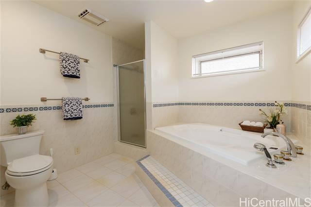 - One-of-a-Kind Custom Home in Makakilo! Pride of ownership shines throughout this beautifully maintained 3-bedroom, 3-bath custom home. With two spacious bedrooms and two full baths on the main floor, the layout offers flexibility for extended family, guests, or a home office setup. Upstairs is a private primary suite oasis, featuring a spa-like bathroom with a relaxing soaking tub, separate stand-up shower, and a large walk-in closet. The fenced in backyard is perfect for entertaining—enjoy outdoor dining, gatherings, or simply soaking in the Makakilo breezes in your own private space. Located just minutes from the heart of Kapolei, Oahu’s vibrant Second City, you’ll love the convenience of nearby shopping, dining, schools, and quick freeway access. This home is truly one of a kind and has been lovingly cared for. You need to see it in person to fully appreciate all it has to offer!