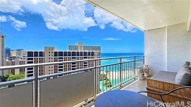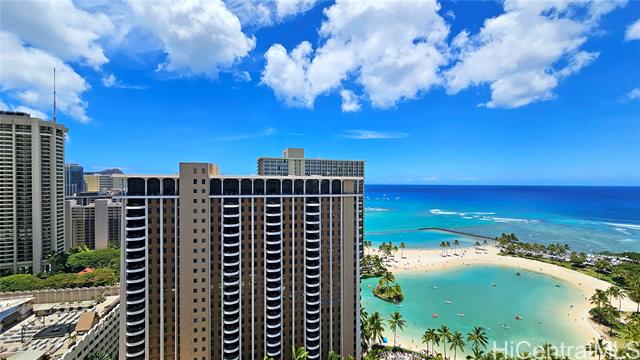 - Bring your Offer! Breathtaking ocean, lagoon, and Diamond Head views await from this premium upper-floor unit at the world-famous Ilikai Hotel & Luxury Suites. Enjoy sweeping panoramas of the Pacific Ocean, Waikiki Beach, Duke’s Lagoon, and Diamond Head from the comfort of your private 120 sq. ft. lanai. Tastefully renovated, this unit features a modern full kitchen with granite countertops, stainless steel appliances, a breakfast bar, high quality LVP flooring, and split air conditioning. Additional upgrades include waterproof luxury vinyl plank flooring, a custom-built wardrobe and storage closet, pull-out kitchen shelving, and a Toto Washlet in the restroom. The property is zoned for short-term rentals, with property management available, making it ideal as a primary residence, vacation home, or high-return investment.