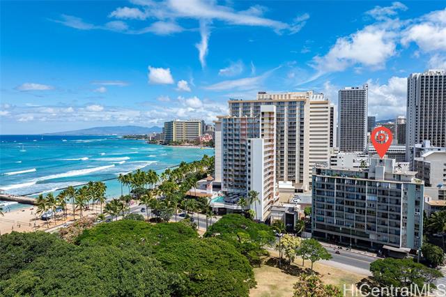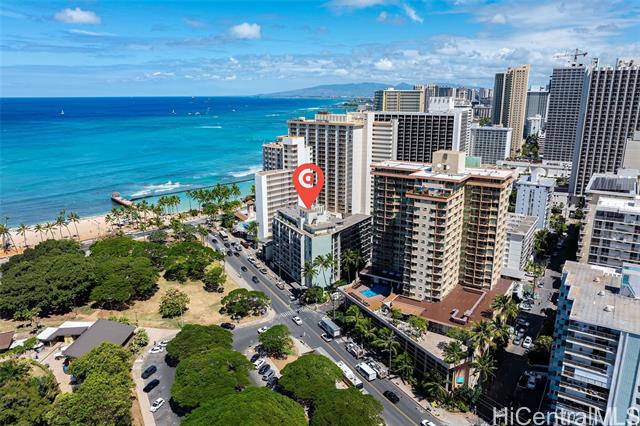 - Trust sale - specific terms apply. Rarely available high-floor studio at the Waikiki Grand Hotel—a LEGAL SHORT TERM RENTAL with no special registration required. This 8th-floor corner unit is one of the building’s largest layouts at 384 sq. ft. and offers peekaboo views of Diamond Head, views of the Ko'olau Mountains and Manoa valley. This resort-zoned bright & breezy condo, with its abundance of windows, kitchenette and full bath, make for the perfect Waikiki opportunity. Located directly across from Queen’s Beach, Kapiolani Park, and the Honolulu Zoo; just steps from Waikiki’s best attractions and surf. The unit is fully furnished and turnkey; ideal as an income producing property or private retreat. Continue using Castle Resorts’ rental program with its strong occupancy and full-service management, or choose to self-manage. Waikiki Grand amenities include a rooftop sundeck with panoramic ocean views, pool, on-site bar and restaurant, and front desk concierge. Maintenance fee includes electricity, cable TV, internet, water, and sewer. This is a prime opportunity to own a well-maintained Waikiki property with flexible use and proven income potential.