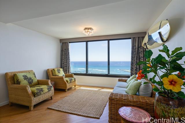 - Awesome view of the Pacific Ocean, marina, Harbor, magic Island, Ala Moana park to Makaha..... Excellent location near the convention Center, Waikiki Beach, across the street from Ala Moana Shopping Center with all the conveniences to shops, restaurants, super markets...... Secured building with 14/7 security & lots of amenities include pool, jacuzzi, tennis court, BBQ area, club room...... Spacious PH level corner unit in Ewa Tower with enclosed lanai & large window can open up to enjoy the fresh air. The unit offers endless view from each room from mountain (Manoa velly), ocean to Makakilo, removed popcorn ceiling. Each room has spacious closets & both 2 assigned parking near the elevators. Seller has paid off the assessments on building's waste water line replacement and replacement of all windows. Add your personal touch to make this one your own piece of paradise. Monthly condo fee $4122.73 at $1.83 per sq.ft. (Building association monthly maintenance fee $3270.85 include water/sewer, electric, Wifi + Association reserve for common area $807.26 + Association reserve on resident units $44.62). To be sold "as is".