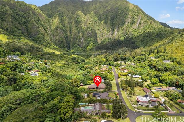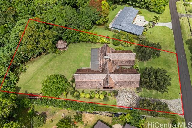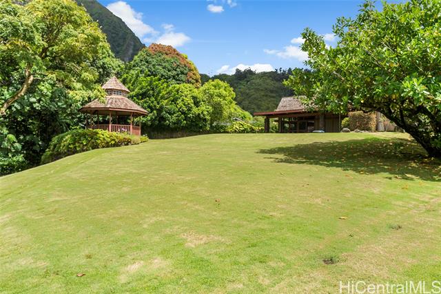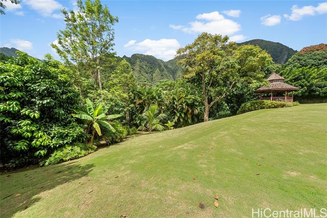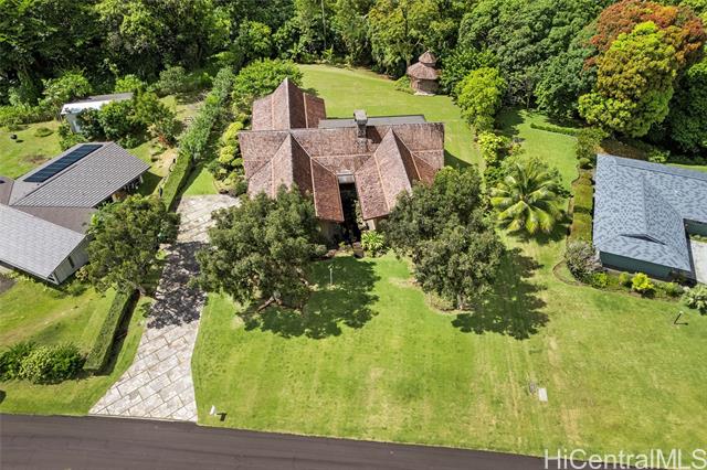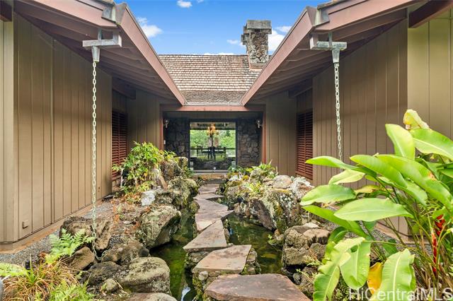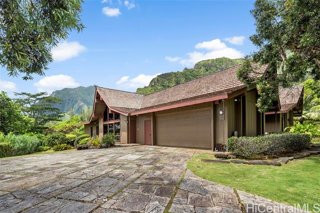 - Elevate your lifestyle with this private single-level residence, a tranquil haven from the hustle and bustle. Nestled in the prestigious gated community of Haiku Plantations on O‘ahu, the home sits on over 1.1 acres against the lush Ko?olau Mountains and features a natural stream, charming gazebo, and mature tropical flora and fruit trees, providing privacy and a true sense of retreat. Designed for Hawai‘i’s indoor-outdoor lifestyle, the residence offers over 3,120 sq. ft. of living space, with soaring cathedral ceilings, parquet hardwood floors, a stately fireplace and expansive picture windows that fill the home with natural light. A spacious lanai opens seamlessly to beautifully landscaped grounds, ideal for entertaining or quiet reflection. The flexible floor plan allows for additional bedrooms, while the primary suite offers serene mountain views. Enjoy estate-sized lot seclusion on a quiet street, just minutes from Windward O‘ahu conveniences. Discover peace and serenity—call today for a private showing.