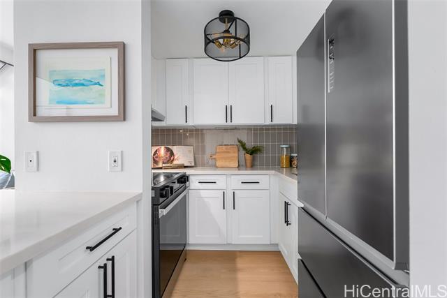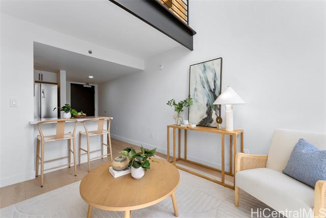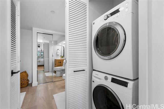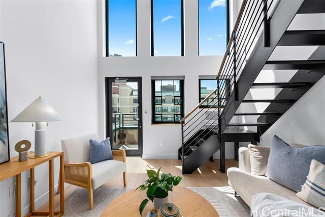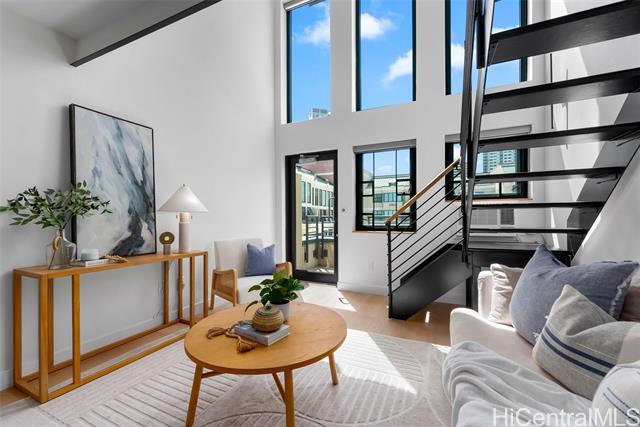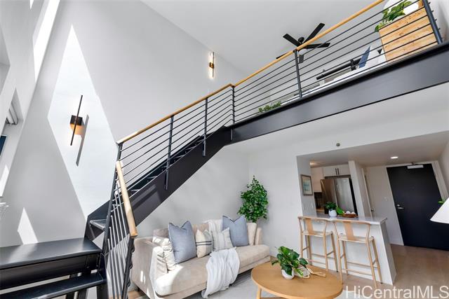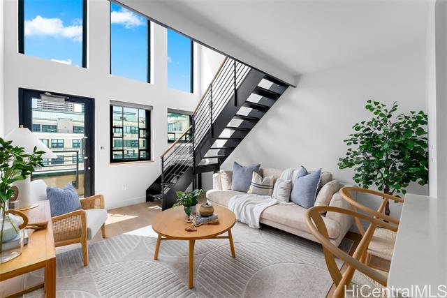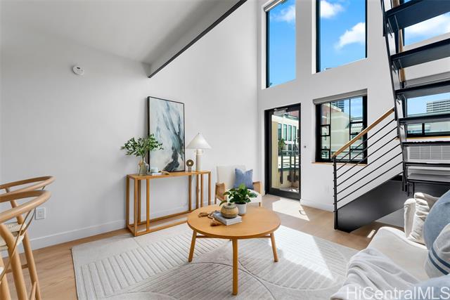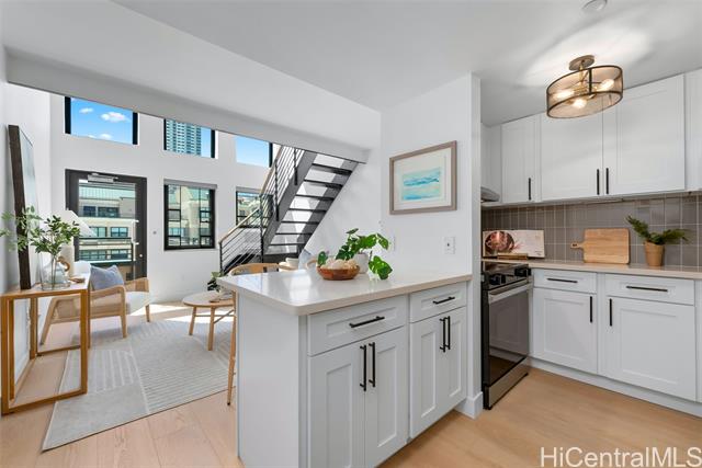 - This modern and sleek 1 bed, 1 bath loft-style unit in the heart of Kakaako offers a stylish urban retreat with high ceilings and an open-concept layout. Featuring vinyl and tile flooring throughout, the space is both functional and easy to maintain. Enjoy the convenience of in-unit w/d, window AC, automatic blinds, and a dedicated parking space. With its contemporary design and thoughtful touches, this unit perfectly blends comfort and city living. Live, work and play in Kakaako from this beautiful newly renovated unit!