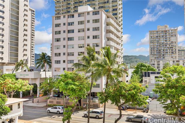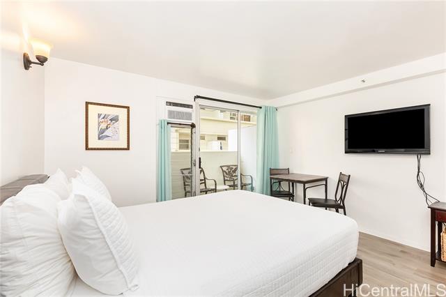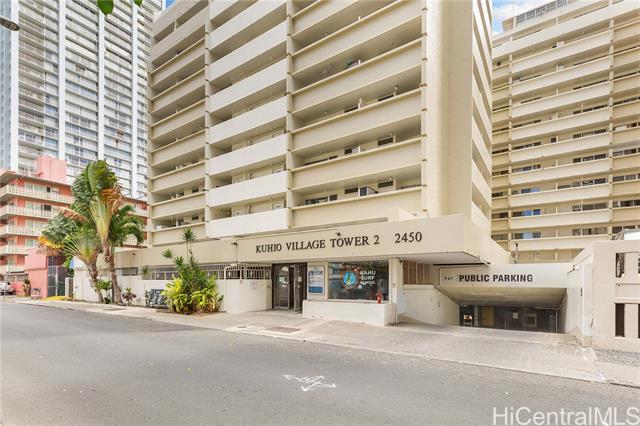 - Located in Waikiki's vibrant resort zone, this fully furnished studio in Kuhio Village II is a legal short-term rental, ideal for investors or as a personal getaway with rental income potential. Positioned within close proximity to Waikiki Beach, shops, restaurants, and entertainment, this unit offers unbeatable convenience in a high-demand location. The is a leasehold property with the lease extending through 2033. The maintenance fee covers cable TV, electricity, hot water, sewer, and common area upkeep, making it easy to manage as a rental or vacation home. The building features paid parking available in the basement, on-site security with night patrols, and is surrounded by everything Waikiki has to offer.