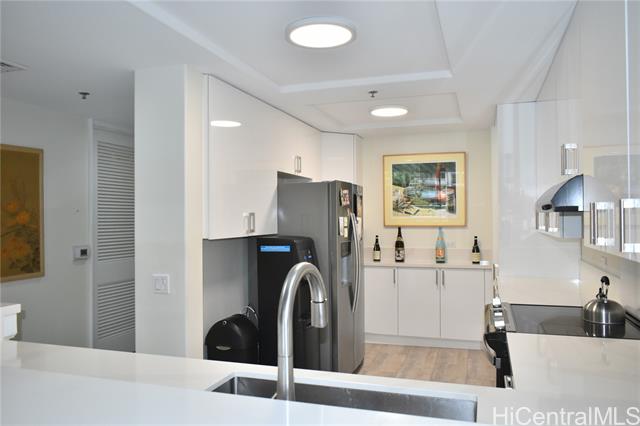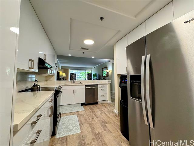 - Spacious and beautifully updated, this 2-bedroom, 2-bath condo at Kalele Kai offers 1,427 sq. ft. of single-level living with central AC and a serene 265 sq. ft. covered lanai—perfect for enjoying peaceful garden, mountain, and marina views. The kitchen was fully remodeled in 2023 with modern finishes, white lacquered cabinets, and warm vinyl flooring. Both bathrooms were refreshed with elegant marble tile flooring and shower walls, complementing the original cabinetry. Enjoy resort-style amenities including a heated pool, whirlpool, BBQ areas, clubhouse, dog park, walking/jogging paths, and boat dock access. Gated entry, fire sprinklers, and two covered side-by-side parking stalls provide comfort and security. Walking distance to Safeway, Costco, and the marina. Pet-friendly (verify). Experience tranquil island living in the heart of Hawaii Kai. Note: Seller may request a lease-back. Priced under the December 2024 appraisal of $1,050,000.
