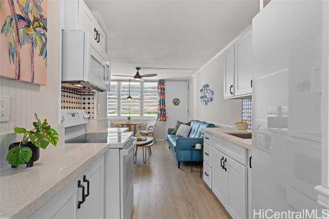 - Welcome to your beachfront dream getaway! This beautifully remodeled beach condo perfectly blends modern luxury and coastal charm on one of Hawaii's most breathtaking beaches. Enjoy panoramic ocean views from your private lanai, where you can sip your morning coffee while soaking in the island breeze. Step inside to find a fully furnished, open living area bathed in natural light, featuring high-end finishes and stylish decor. Updated throughout with new flooring, cabinetry, countertops, and new appliances. New windows and lanai doors frame the picturesque views, a $17,000 upgrade! The building has recently undergone extensive upgrades, enhancing both aesthetics and functionality. Take advantage of the newly renovated common areas, such as the BBQ area, and enjoy direct beach access! Whether you’re looking for a permanent residence, a vacation home, or an investment opportunity, this condo offers the best of island living. Don’t miss your chance to own a piece of paradise—schedule a showing today!