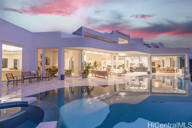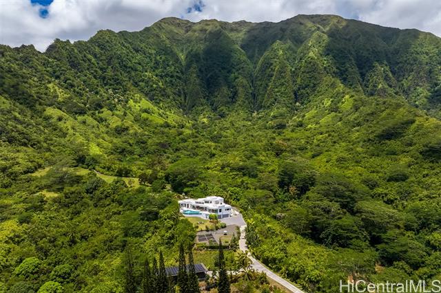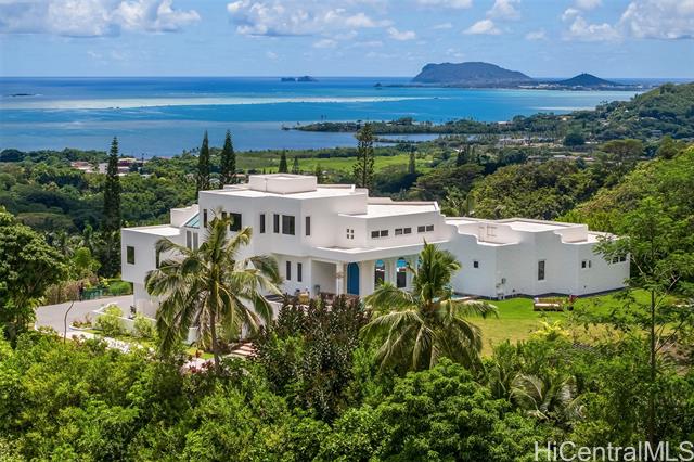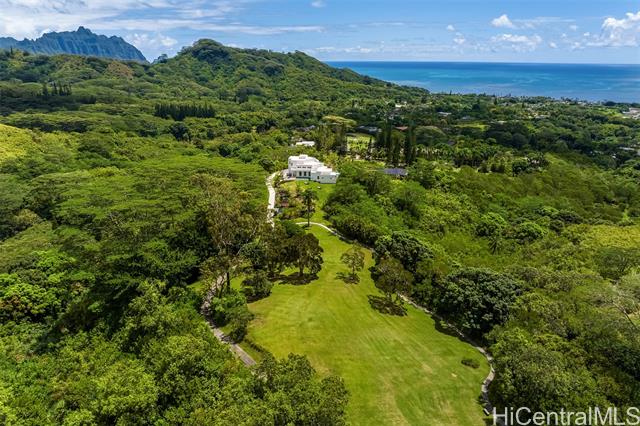 - Prominently situated against the majestic Ko'olau Mountains, this extraordinary 23+ acre estate is a rare opportunity to own a true legacy property. Hidden behind gates & elevated above the coastline, it offers breathtaking panoramic views of Kaneohe Bay, the Pacific Ocean & verdant mountain cliffs - a setting that truly feels worlds away. The custom-designed smart home spans over 5,500 sq ft of sophisticated living space with 5 bedrooms, 5 full baths & 2 half baths. Designed for seamless indoor-outdoor living, expansive glass doors open to stunning lanais, a sundeck with resort-style infinity-edge pool, a full outdoor kitchen & BBQ pavilion - perfect for entertaining or quiet reflection. This self-sustaining haven has a spring-fed water system, 120-panel PV system & 6 Tesla Powerwalls. Other exceptional highlights include: Miele appliances, 140" theater room with wet bar, elevator, central AC, fire sprinklers, 3-car garage with parking courtyard & much more. The possibilities are endless across this expansive parcel of highly coveted land. A unicorn estate & once-in-a-generation opportunity...only one buyer will inherit this treasure! *Sale pending Final Public Report