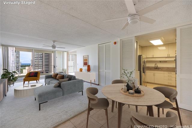 - Welcome/E Komo Mai to Waipuna resort-like island living at its best. This pet-friendly unit located on the 14th floor offers a peaceful retreat away from the busy city. Overlooking a beautiful tranquil duck pond, lush gardens and seasonal fruit trees, this residence offers a peaceful ambiance. Its open layout allows the gentle island breeze to freshen the air and the mood, while enjoying a partial ocean view from the lanai. Waipuna is pet-friendly, steps away from Ala Moana Shopping Center, popular beaches, restaurants and shops. Amenities included: Heated Pool, Sauna, BBQ area, Exercise room, Pickle ball/Tennis court, Dog Run, Guest Parking, 24/7 Security, On-site Resident Manager, Library, Bike & Surfboard Storage, Serenity Pond & Gazebo, Private Garden path walks. Note: One or more photos have been enhanced.