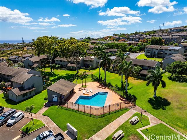 - Welcome to Makakilo Hale One! This unique 3-bedroom, 2-bath home offers stunning ocean and garden views with a beautiful breeze that Makakilo is known for. Thoughtfully designed with charming architectural details, the home features built-in Murphy beds, ample storage throughout, and an oversized attic space, perfect for all your storage needs. The layout brings in natural light and cool breezes, creating a comfortable and inviting atmosphere. Enjoy the convenience of a full bathroom on the first floor, in-unit washer and dryer, and two assigned parking stalls. You'll also have access to a community pool and a great park just across the street. Located in Kapolei, you'll have everything you need in terms of shopping, dining, and entertainment, all just minutes away. Don’t miss this opportunity to own a one-of-a-kind home in beautiful Makakilo!