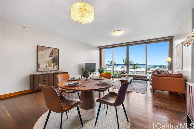 - Upscale Urban Living. Welcome to the lifestyle you deserve—where sophistication, serenity, and island energy converge. This preferred 3 bed, 3 bath corner residence at ONE Ala Moana offers 1,800 SF of refined living with an open floor plan, soaring ceilings, and breathtaking ocean, mountain, and city views framed by expansive glass windows. Thoughtfully appointed with curated designer finishes, high-end appliances, hardwood floors, plush carpets, motorized blinds, central A/C, fire sprinklers, and generous storage—every detail reflects luxury and ease. Enjoy direct elevator access to world-class shopping and dining at Ala Moana Center. Come home to 24-hr concierge service, secure entry, and indulge in resort-style amenities: infinity pool, hot tubs, BBQ cabanas, dog park, movie theater, massage and fitness rooms, sauna, yoga studio, private dining rooms, and stylish guest suites. Wind down with golden sunsets at Ala Moana Beach, just moments away. Pet-friendly and elevated in every way with 100% hurricane insurance—this isn’t just a home, it’s a sanctuary in the sky. Luxury, comfort, and elegance await!