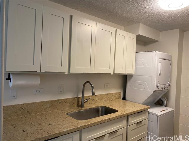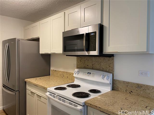 - Upgraded renovated 2 bdrm. 1 bath with a good size lanai. Unit also comes with a large refrigerator and washer/dryer. Freshly painted and cleaned. Unit was highly upgraded with new kitchen and bathroom in 2019. 1 uncovered assigned parking stall. Lots of guest parking stall in the project. Resident Manager and Security guards on duty. Facing large park with great view and relax