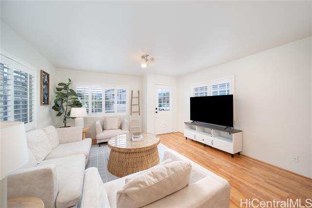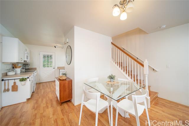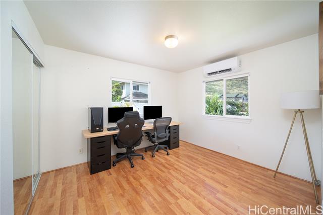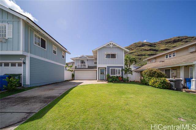 - Discover your slice of paradise in this charming 3-bedroom, 2-bathroom retreat. Step inside to find a bright and airy living space flooded with natural light. The upstairs loft offers additional versatile living space, perfect for a home office or cozy retreat. The bedrooms provide ample space for rest and rejuvenation, while the primary bedroom boasts the added luxury of an attached balcony. Additionally, the primary bathroom features a double vanity for added convenience. Stay cool year-round with new split AC units in every room, while leased PV keeps energy costs low. Outside, admire the fresh exterior paint as you pull into the spacious driveway and the attached 2-car garage. Hosting gatherings is a breeze with the large yard and covered lanai, where you can enjoy stunning views of the Waianae mountain range. Conveniently located near beaches and popular hikes; adventure awaits just moments from your doorstep. Don't miss this opportunity to embrace a laid-back lifestyle in this beautifully appointed home!