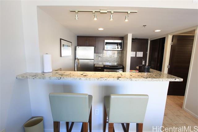 - Ideal property for both investment and owner use! Higher floor unit, which totally renovated in 2014 and has been managed by Ilikai Hotel and Luxury Suites as hotel condo. This 500 square foot unit is furnished with upscale appliances and modern fixtures that exude the style and comfort you would expect to find in a luxury hotel suite, well maintained and generate good income. Special features include Kitchen equipped with stainless steel appliances, designer bathroom with granite countertops and tiled showers, 40-inch flat screen televisions, and split AC. You can enjoy sweeping and dramatic views of the Waikiki Skyline and the Koolau Mountains from this spacious 120 square foot lanai.