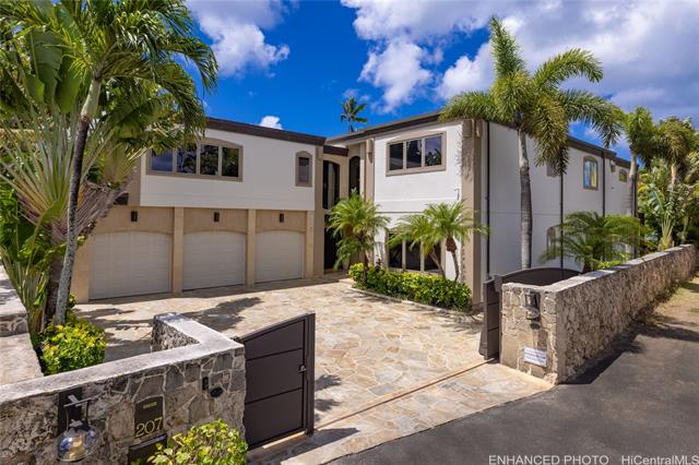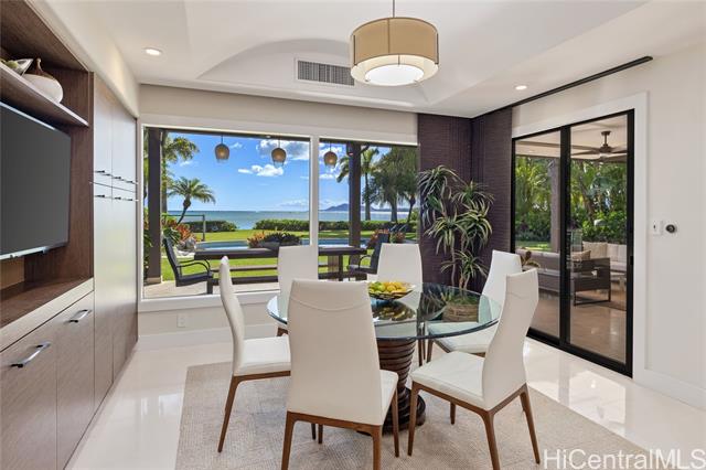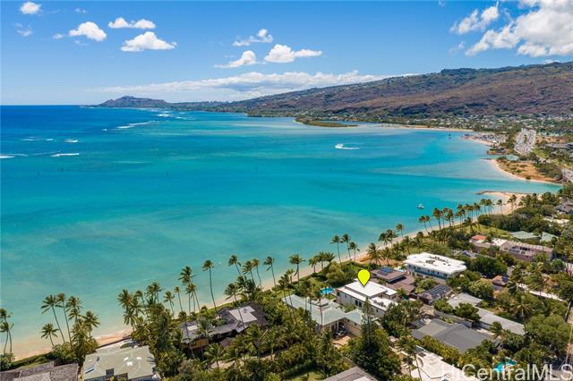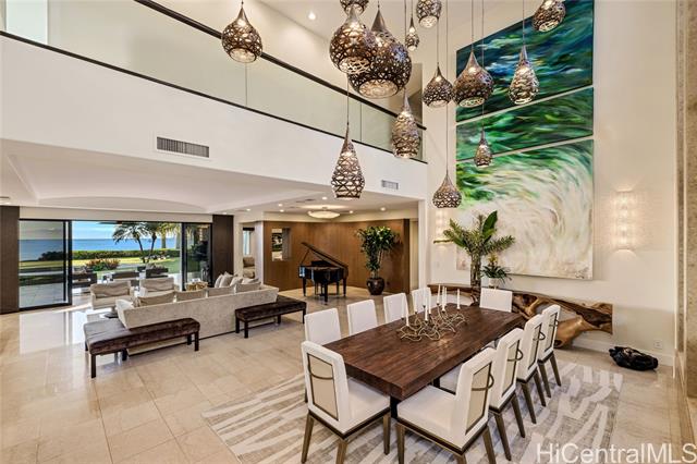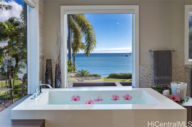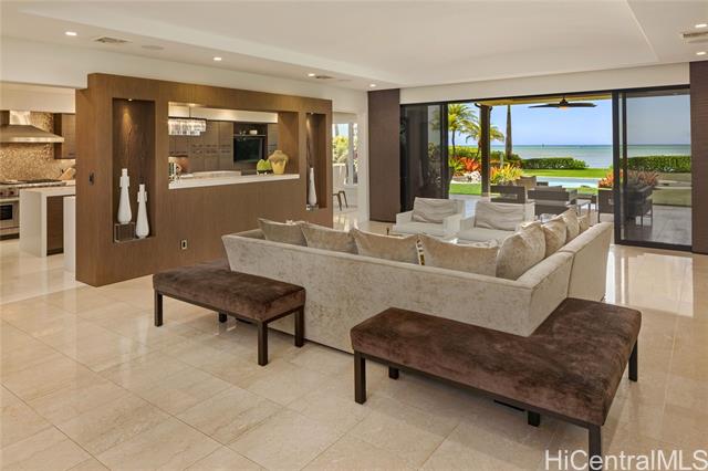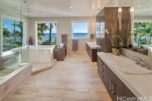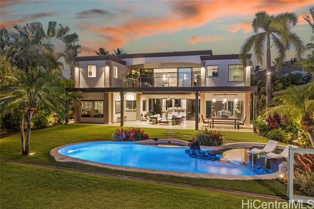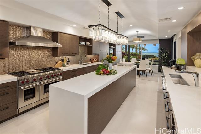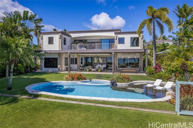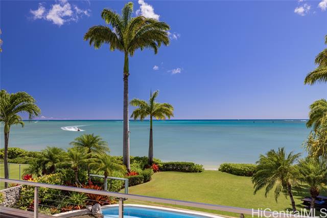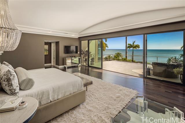 - Experience island luxury, a modern oceanfront estate on one of Oahu’s most prestigious coastlines. Walls of glass capture sweeping views of Diamond Head, the Pacific, & Honolulu’s city lights. Interior Design by Cathy Lee Style, this 6,406 sq. ft. residence offers 5 bdrms, 5.5 bths, an office, & expansive living areas that seamlessly connect to a large covered lanai, perfect for both relaxed living & grand entertaining. Enjoy resort-style amenities w/a sparkling pool, spa, and a sandy beachfront with 72 Linear feet of ocean frontage. The chef’s kitchen features Sub-Zero, Wolf, & Bosch appliances, a 12-ft island, custom cabinetry, handmade Italian glass tiles, & a walk-in pantry. Highlights include Fleetwood doors, Pella windows, a 1,700-bottle wine cellar, elevator, gym, home office, & smart-home controls. The primary suite offers a private lanai, 2 DREAM closets, & a spa-inspired bath with ocean views. Outdoors, enjoy a 10-ft built-in kitchen w/BBQ, a 3-car garage with gated driveway, & professionally landscaped grounds w/retractable pool gate for security. Fully furnished & meticulously curated, this home is a rare opportunity to own a turnkey beachfront sanctuary in Portlock.