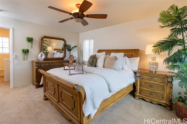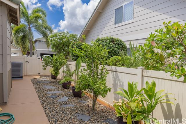 - Welcome to the gated community of Hu'elani located in the Ewa neighborhood of Oahu, Hawaii. Pride of ownership is evident in this 3 bedroom, 2.5 bath home with central AC, enclosed two car garage and enclosed back yard with a covered lanai. The home has 36 photovoltaic panels and was freshly painted prior to coming on market. Resort like amenities, close proximity to golf courses, shopping and schools. The maintenance fee covers painting of homes every 10 years, roof maintenance/repair, front yard maintenance, yearly termite inspection, water & sewer, clubhouse, pool, gym and spa, the clubhouse & entry gate are monitored by video cameras, Site Manager and plenty of guest parking. You don't want to miss this special home and community!