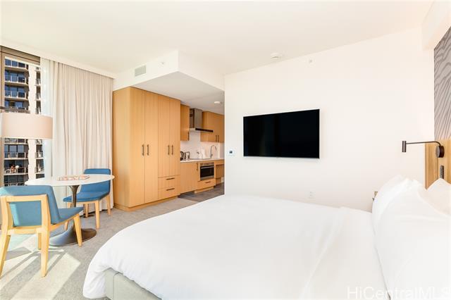 - A desired corner unit with ocean view at new hotel condominium, Renaissance Residences Honolulu, completed in December 2023. This studio is the corner end unit on ocean side and captures Magic Island right in front of the unit. Perfect for investors and part-time owner as the unit is fully furnished and ready for the hotel rental. The unit owners can enjoy gorgeous hotel amenities including but not limited to spa, heated pool, lap pool, fitness center, playground, event room and dog park. Mediterranean restaurant, coffee shop and convenience store are slated to open on the ground floor. World famous Ala Moana Center right across the street and Ala Moana Beach within walking distance. Locating in between Waikiki and rapidly developing Kakaako, a life with full of excitement will await for you.