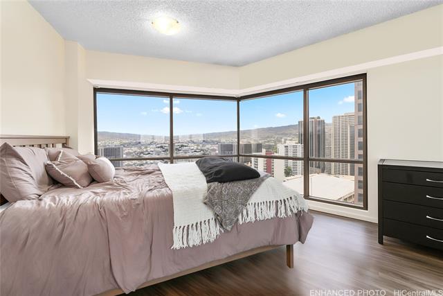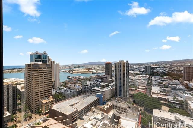 - Located on the 29th floor of the Executive Centre, this 1-bedroom, 1-bath apartment offers stunning panoramic views of downtown Honolulu and is also a great investment opportunity. Inside, you'll find a full kitchen, in-unit washer and dryer, and central A/C for year-round comfort. The open layout provides comfortable living space with floor-to-ceiling windows that fill the unit with natural light. Enjoy the convenience of city living with nearby shops, restaurants, and offices—plus building amenities like 24-hour security, on-site management, and a pool/spa area. Whether you're looking for a place to call home or a smart investment, don’t miss this opportunity to own a high-floor unit in one of the city’s most central and sought-after locations!