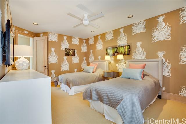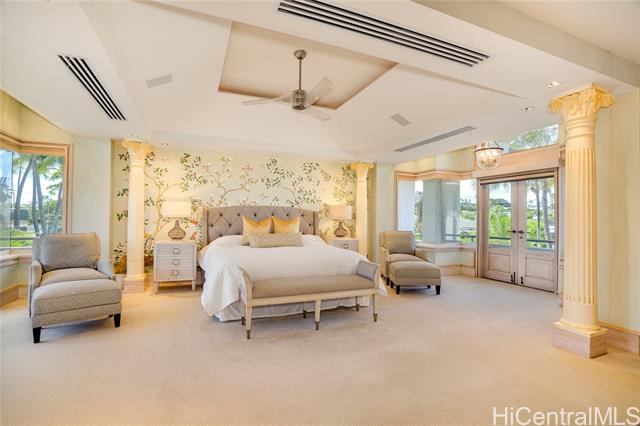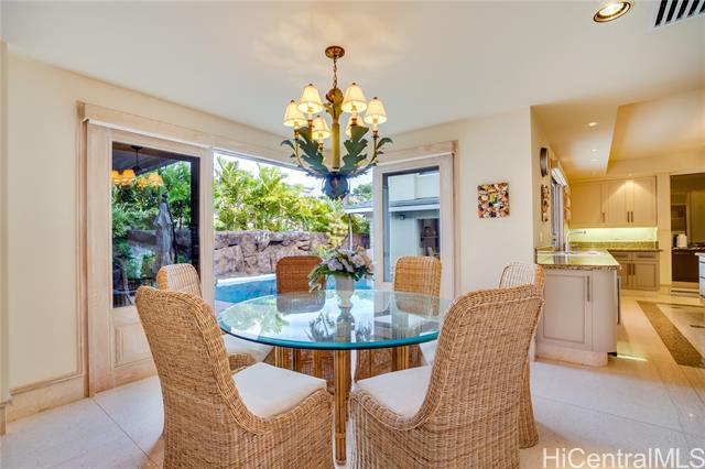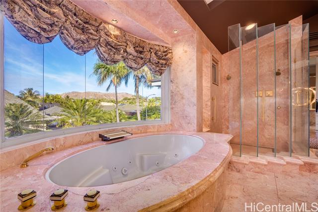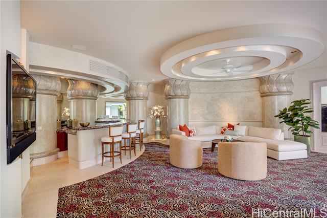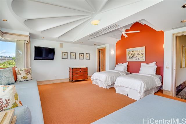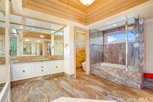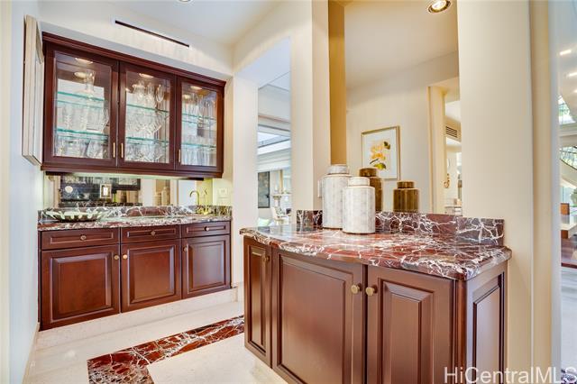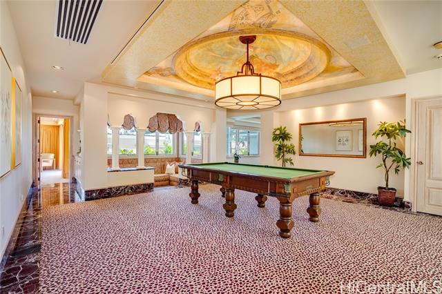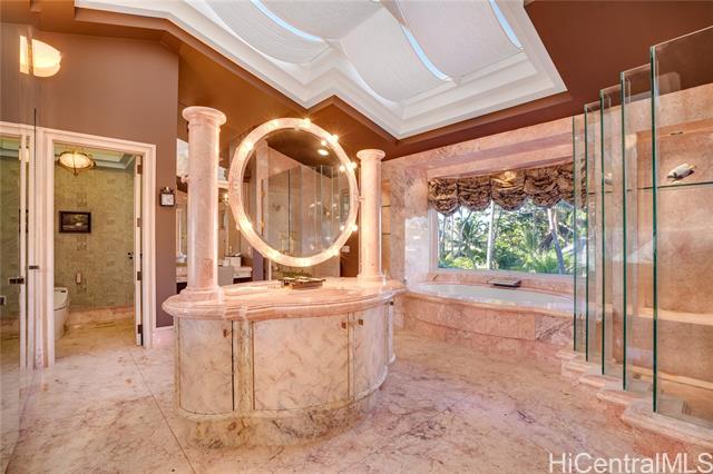 - This home is an exceptional buy for the Kahala market. Priced below replacement cost for this INCREDIBLE & RARE to see craftsmanship! Completed in 1993 & built from quality materials & impeccably detailed carpentry. The original décor & finishes of each room was created as a series of elaborate fantasies from Shakespeare to the travels of Napoleon. A dramatic entry boasts soaring ceilings impeccably detailed; a sweeping staircase highlighted by walls of glass; & an extensive use of fine marble & granite throughout. Wide pocketing glass doors joins the interior to the outdoor spaces & pool for relaxing in this splendid residence. The first level includes a grand dining area with a reflective mirrored ceiling, a service bar with a spacious lounge for social gatherings, a library/media room & two bedroom ensuites. On the second level is a billiard area with a step down cozy seating area for spectators to relax. To the right & left of the billiard room are two additional bedroom ensuites. The home includes a 3-car garage & lots of storage areas. Located across the street from the former Weinberg Estate & a direct access to sandy beach for a stroll along the ocean.