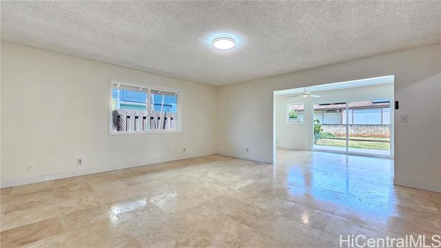 - Back to Market from Escrow... cash buyer did not have enoght. This move-in ready home features 3- bedrooms, 2- full baths, an open-concept layout, freshly painted. Completely remodeled kitchen with brand new countertop, new cavinets, new flooring in living room and bed-rooms. Single-level home with vaulted ceiling and Back yard are what you have been waiting for! Located from short distance to several shopping centers: Wal Mart, great dining, entertaiment, retail stores, recreation facilities and Parks Perfectly, enjoy all that Mililani has to offer. Minutes from elementary school and Mililani High School. Convenlently on/off to major freeway exits offering easy access to everything you need . Located on a quiet corner lot of house conveniently located at the beginning of Mililani Town. This 6,340 sqft flat lot offers a great single story for may extension a bigger house with vaulted large land. Located in the desirable Mililani neighborhood.
