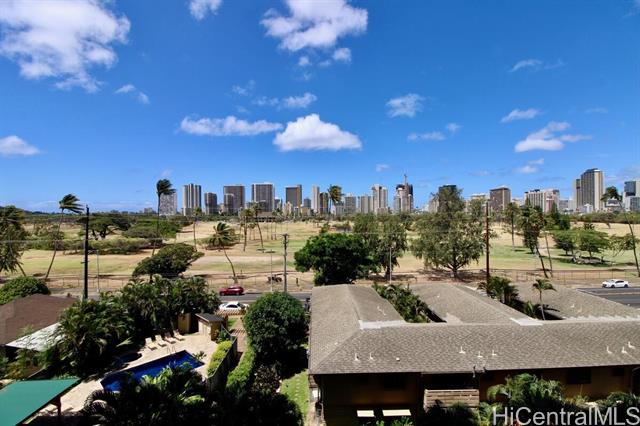 - Sprinklers are in the unit. Spacious 2BD/2BA/1 Covered Pkg, Fee Simple, some Guest Pkg are available at the garage. Nice Unit with Huge lanai, nice and breezy, enjoy spectacular Golf Course and Diamond Head view. Very quiet and tranquil cozy atmosphere. New W/D in the unit. Nicely renovated and installed Laminate Floorings entire the unit. Sprinklers are installed in the Kitchen, Livingroom and both Bedrooms. Pets allowed(verify). Nice amenities including BBQ, Pool, Cabana, Recreation Area, Yard, Car Wash area with low maintenance fee. Resident manager is on site. Located near Kapahulu Ave, there are many gourmet restaurants, Starbucks, shops, Gourmet Safeway is in a shopping mall just 1 block away. Super convenient location, easy to commute to schools, UH, State Library, Ala Wai Golf Course, Waikiki can be walking distance. There are many more advantages to live in this property. Don't miss your luxury life!!