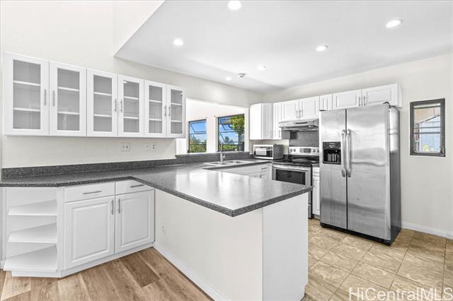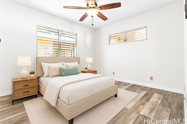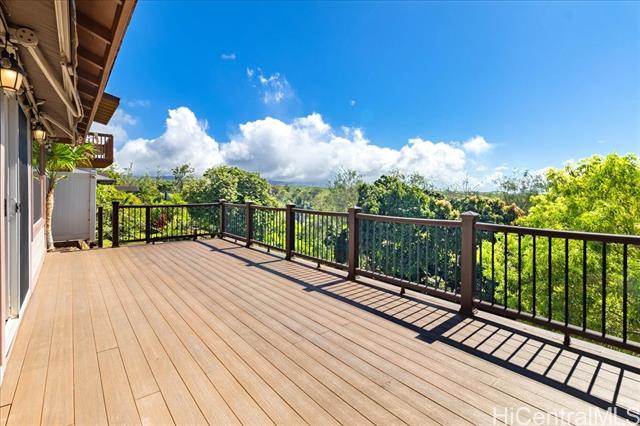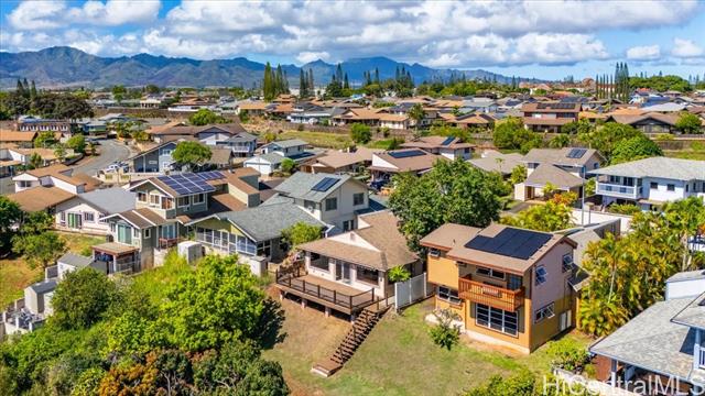 - Welcome home to 94-629 Kuaie Street, a beautifully refreshed single-level residence tucked away on a quiet street in desirable Mililani Town. This 3-bedroom, 2-bathroom home sits on a rim lot that captures tranquil views, cool breezes, and a sense of privacy rarely found. Step inside to discover new paint and flooring throughout, creating a bright, move-in-ready space that feels both modern and inviting. Enjoy easy indoor-outdoor living with a spacious Trex deck perfect for relaxing or entertaining while taking in the lush surroundings. Practical upgrades include 12 owned PV panels to help keep energy costs low and a convenient carport for covered parking. As part of the Mililani Town Association, residents enjoy access to recreation centers, pools, parks, and community events—all in one of Central O‘ahu’s most established neighborhoods. Experience the best of island living—peaceful, breezy, and beautifully maintained.
