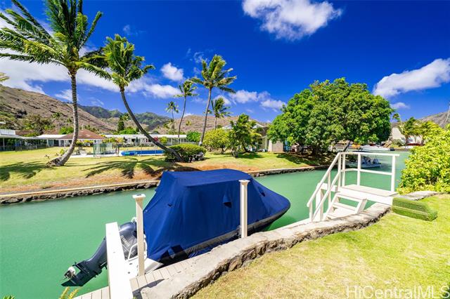 - Enjoy elegant marina living in this pet-friendly, corner-end unit at the highly desirable Gateway Peninsula! This spacious 2-story townhouse offers 1,850 sq ft of thoughtfully designed interior living space with central A/C, hardwood and tile flooring, upgraded windows, doors, plantation shutters, and sun shade blinds along with front, back and side lanais finished with stamped concrete and high-quality turf—perfect for seamless indoor-outdoor living. The home features abundant storage, including built-in shelving, two covered side-by-side parking stalls, a wood-floored attic, and outdoor storage sheds; not to mention Net-metered, 26-owned, solar panels keep electric bills near zero! Enjoy DIRECT marina access from your OWN PRIVATE BOAT DOCK—perfect for kayaking, OC1, paddle boarding, or boating. Community amenities include a clubhouse, swimming pool, guest parking, car wash, and an on-site resident manager. Located just across from scenic Maunalua Beach Park and minutes from Costco, Safeway, dining, shopping, and more—this rare marina-front unit offers the best of East Honolulu’s waterfront lifestyle.