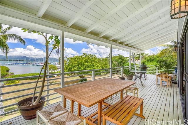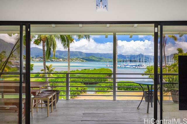 - Embrace the allure of this exceptional waterfront property offering breathtaking panoramic views of Kaneohe Bay and the majestic Koolau Range, all situated on nearly 1.5 acres of R-10 zoned land. Boasting over 450 feet of ocean frontage with deep water channels, this rare find presents a once-in-a-lifetime opportunity for boating enthusiasts seeking their dream home. The main residence, designed with versatility in mind, features 4 bedrooms and 4 baths, with a separate 1 bedroom and 1 bath unit catering perfectly to multi-generational living. Additionally, a second structure offers 2 bedrooms, 2 baths, and a covered open-air deck that overlooks the bay, providing a tranquil retreat after a day on the water. Both homes have been impeccably maintained, including a new roof completed in 2021, ensuring comfort and peace of mind. Ideally located steps from Kaneohe Yacht Club, you'll enjoy seamless access to Kaneohe Bay's renowned sandbar and beyond, making every day an adventure on the water. This property is more than just a home; it's an opportunity to create your own waterfront masterpiece. Don't miss your chance to own this slice of paradise—schedule your private tour today!