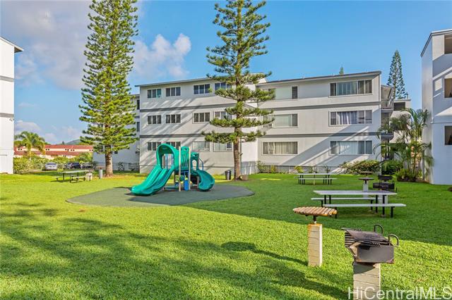 - Price Reduced! Lovely 2 Bedroom, 1 Bath Townhome on the Second Floor Unit in the A Building. Owner occupied and well maintained. Bathroom was remodeled, laminate flooring and ceramic tile. Lots of closet space and built in bookshelves. Bedrooms face the Koolau's for cool breezes. Corner Parking Stall under Building near the stairway. Well Maintained Grassy Areas with open spaces. Great Location near Shopping, Restaurants, Windward Mall, and Businesses. Easy Access to the Likelike Freeway.