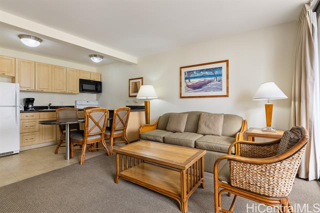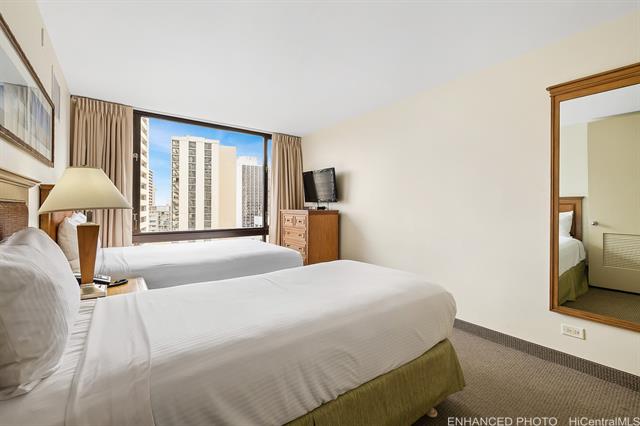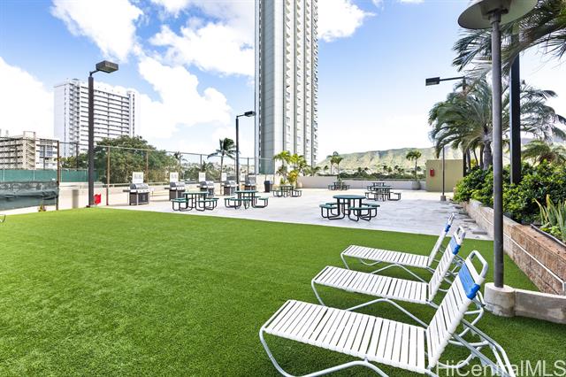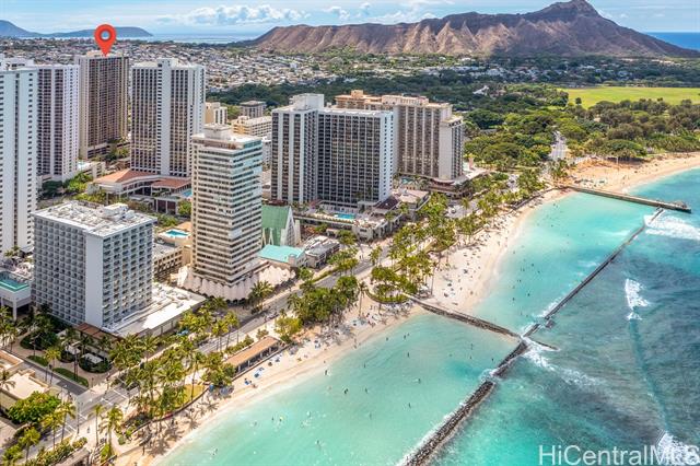 - SELLER WILL PAY OFF Special Assessment at closing!! A 1-BDR 1-Bath 1-unassigned covered parking unit at popular WAIKIKI SUNSET. This fully furnished unit is on the OCEAN side of the bldg & enjoys a partial view of Diamond Head & Kapiolani Park from the open lanai. Seller offers $3,000 credit to Buyer at closing to address various repairs! The unit is currently participating in the Aston Hotel Rental Program, has a valid Non-Conforming Use Certificate (NUC), and can be used as a primary residence or a home away from home if desired. The monthly maintenance fee includes central AC, electricity, water & hot water. Popcorn ceiling removed. Drainpipe Replacement & Fire Sprinkler Upgrade has been completed. Just finished installing brand new Fan-Coil Unit (Central AC). This well-managed condo has a resort-like amenity deck offering BBQ area, lounge, swimming pool & exercise room. On-site conveniences include a laundry room on the same floor & a mini-mart. Proximity to world-famous Waikiki Beach, shops, restaurants, bus lines & much more!