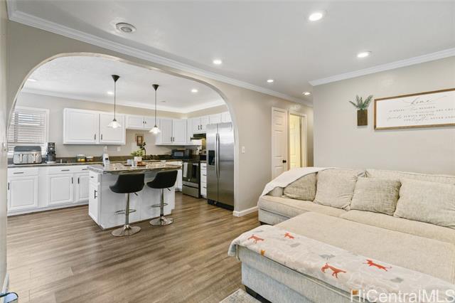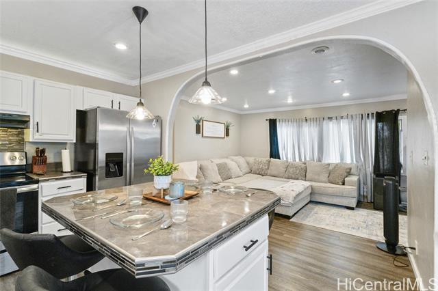 - Next OPEN HOUSE will be on SUN 11/16 from 2-5 pm. Owner occupied so may not have many open houses. Great opportunity for a first time home buyer or those looking to downsize. Affordable single level home with a fourth bedroom or bonus room that can be used as a rental or in-law quarters because of its separate entrance, which may be good for multi-generational living. The kitchen was remodeled in 2023 to a contemporary look. It also has a nice sized pantry closet for additional storage, though you already have plenty of room for your kitchen items in the multiple cabinets. Island in the kitchen takes away the need for a dining room table. Windows were upgraded to double paned. Yard is mostly cement for minimum maintenance. Location is down a private driveway flag lot. Enjoy not having any maintenance or association fees! Nestled between the majestic Waianae Mountain Range and the sparkling Pacific Ocean. Living in Makaha means embracing a more rural lifestyle, with breathtaking views and a laid-back atmosphere that invites you to slow down and enjoy the simple pleasures of island life. Schedule your private showing today for this great home with versatile floor plan! Sold as-is.