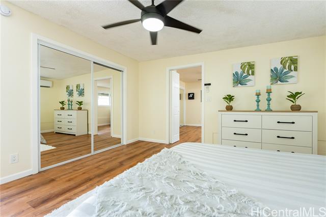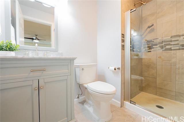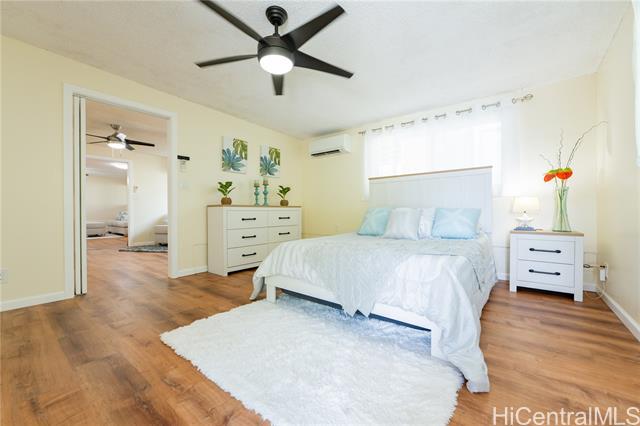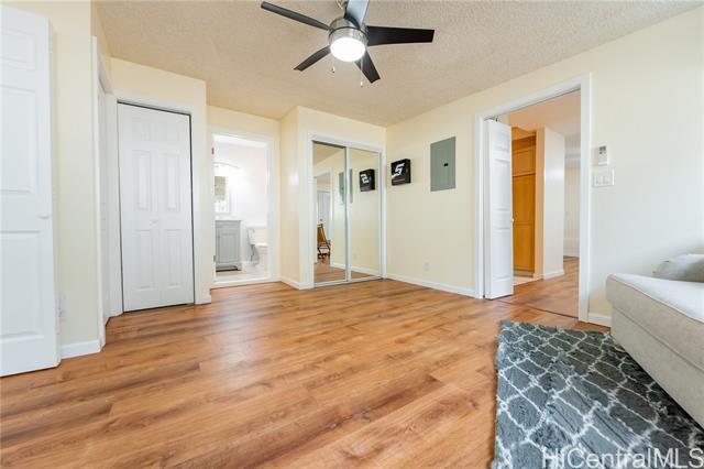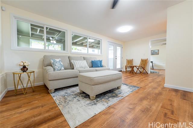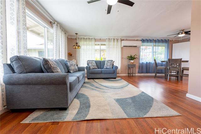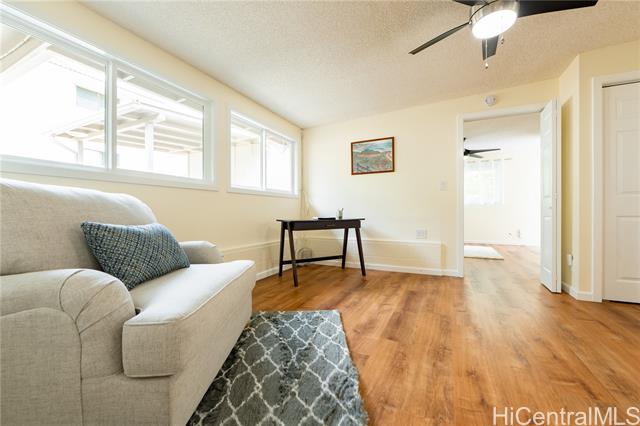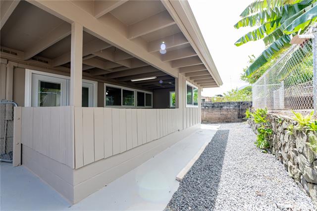 - Pride of ownership with multi-generational potential! This beautifully maintained, upgraded 4-bedroom, 2-bathroom home is tucked into a peaceful neighborhood. Located on a desirable corner lot, the property is completely fenced in with an electronic secured gate of entry with a two-car garage, & extra room for additional vehicles or your boat. This home is thoughtfully updated with complete exterior & partial interior fresh paint, new vinyl flooring, French doors in the family room opening to the backyard lanai. New vinyl windows throughout, upgraded primary bathroom, skylight replacements, lighting fan fixtures, split air conditioning, & more. Additional exterior features include 22 PV owned panels, rain gutters, a propane tank for water heater, outlet & transfer system dedicated for power outages. Storage shed, & partially enclosed covered lanai with a stainless steel sink, ideal for entertaining. Property is surrounded by beautiful mature fruit trees, flowers, palms, hibiscus, gardenia and Hawaiian ti leaves, a low-maintenance yard. Fenced-in dedicated gated area for pets or create an herb garden? Enjoy serene mountain views. Shopping/dining just minutes away.