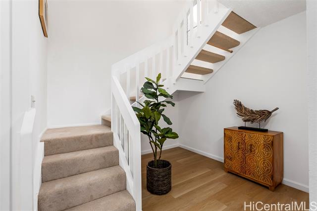 - Convenient and Private 3-bedroom, 2.5-bath townhouse offers a quiet and comfortable living space. Recent upgrades include new vinyl flooring, an updated bathroom, and split AC in the living area and primary bedroom for added comfort. The home also includes two assigned parking spaces, with additional guest and street parking available. Located in a well-maintained community, residents have access to a private recreation center including a swimming pool, basketball and tennis courts, fitness center, and party room. Just five minutes away, Windward City Shopping Center provides dining options, grocery stores, and everyday essentials. For an easy commute to town or Pearl Harbor, you have convenient access to Pali Highway, Likelike Highway, and H-3 Freeway. View floor plan in 3D tour or schedule a showing!