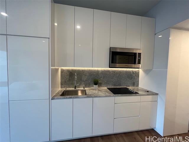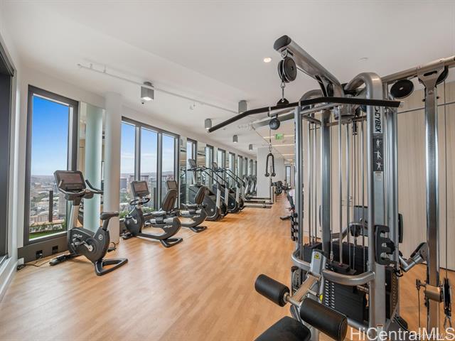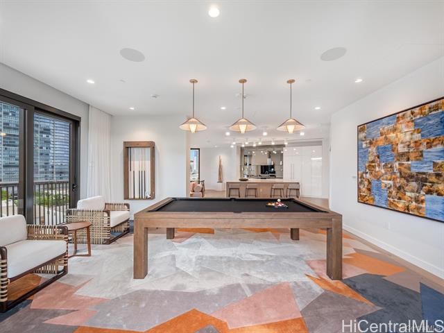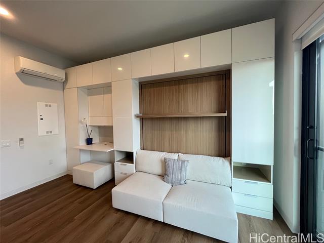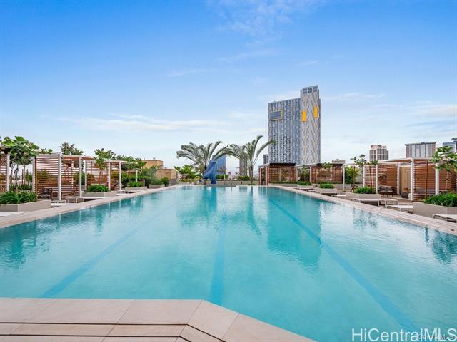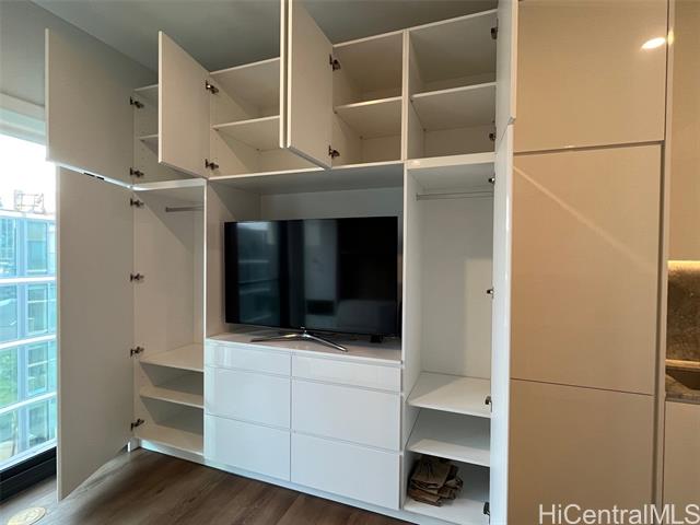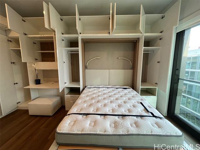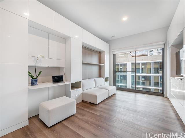 - This studio unit is located on the Penthouse-level of the podium of 'A'ali'i, which is the ONLY floor in the podium that features ultra-high ceilings of approximately 9'10" high! Also included in the sale is a separate STORAGE UNIT which provides approximately 33 sq.ft. of extra storage space. This studios' furnishings include a built-in murphy bed system / couch, desk, and ample built-in closet and cabinet storage. The custom panel refrigerator and dishwasher make the kitchen feel luxurious while also providing functionality to the space. 'A'ali'i features resort-like amenities such as a pool, hot tub, state of the art fitness center, multiple large gathering / party rooms, and a 42nd Floor viewing deck. 'A'ali'i is near the center of Ward Village, which is a planned walkable neighborhood that provides easy access to Ala Moana Shopping Center, Waikiki, Whole Foods market, numerous restaurants, and local shops. Schedule a showing today to experience the luxurious 'A'ali'i in Ward Village!