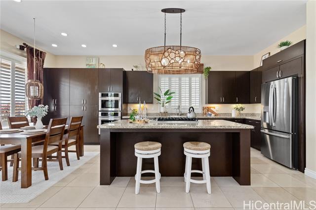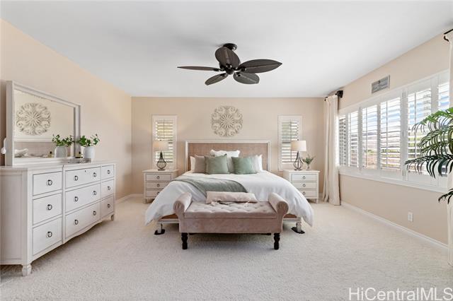 - Discover breathtaking ocean and mountain views from this distinguished residence, ideally positioned on the 14th green of the prestigious Hawaii Kai Golf Course. This elegant and spacious home has over 3,000 sqft. living area that offers a refined lifestyle with thoughtfully designed spaces including a formal living room, dining room, family room, private office, and a sunlit eat-in-kitchen. Crafted with attention to detail, the home features soaring 10-foot ceilings, granite countertops, stainless steel appliances, travertine flooring, plantation shutters, custom drapery, split air conditioning, a security system, and 26 owned photovoltaic panels for energy efficiency. Step outside to your private oasis - an inviting heated in-ground pool with a tranquil waterfall, surrounded by lush tropical landscaping. Located just minutes from iconic destinations such as Hanauma Bay, Sandy Beach, Koko Head, and Makapu'u, as well as premier dining, shopping, and outdoor adventures at Koko Marina Center. This island home offers the perfect balance of luxury, comfort, and convenience. Make this exceptional property your new home!