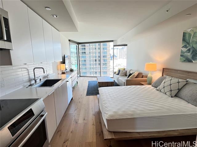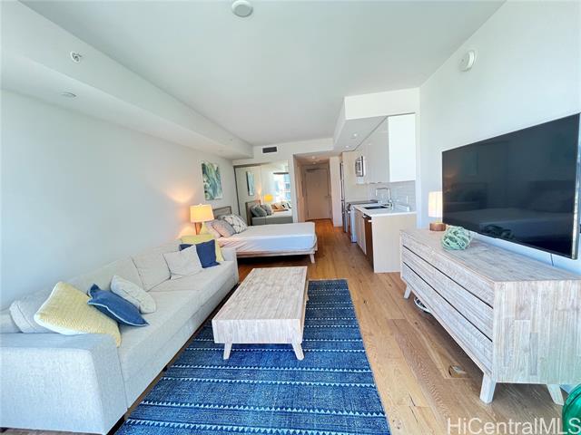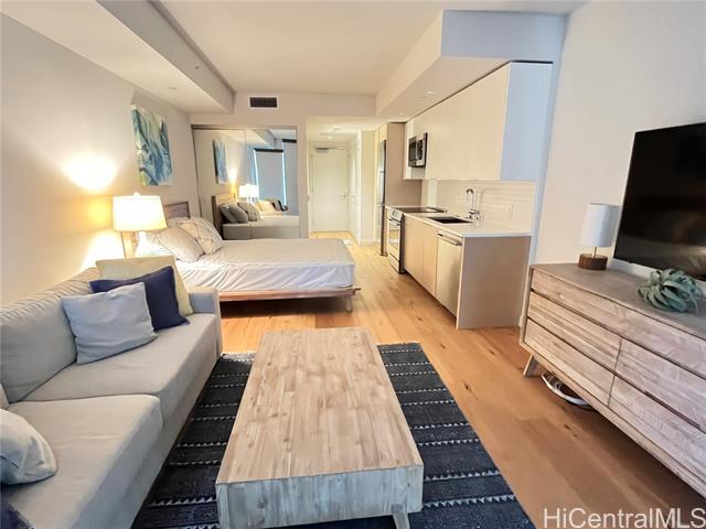 - Beautiful studio unit came with storage and one parking. Located at the prime intersection of Queen Street and Kamakee Street, this condominium offers ocean views from all 466 units. Directly connected to Whole Foods Market, it features a 40th-floor rooftop terrace with panoramic ocean and sunset views, a 24-meter lap pool, a family area with a children’s playground, a leisure pool, six outdoor dining pavilions and cabanas, an outdoor workout space, an indoor gym, a yoga area, three guest suites for visiting family and friends, a steam sauna room, a private movie theater, a lounge/karaoke room for parties and events, a private dining room with a catering kitchen, storage areas for surfboards and bicycles, and a dog run. Fully finished in a modern style and move-in ready.