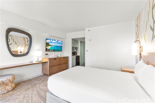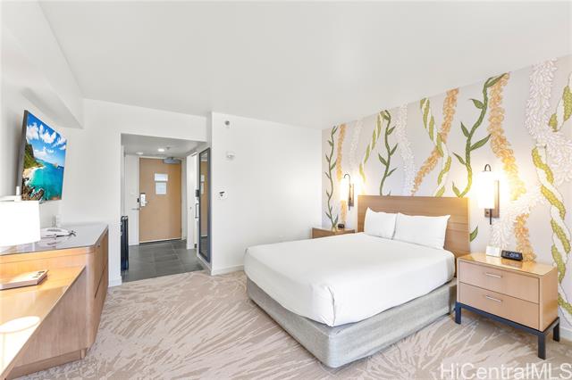 - Stylish and newly renovated, this ADA-accessible Waikiki Tower studio at Ala Moana Hotel showcases modern finishes and a touch of island charm with its locally inspired accent wall. The private lanai offers captivating city and ocean views, while the interior includes a queen bed, full bath, mini fridge, and microwave. Conveniently located on the same floor as laundry and vending machines. Ideal for a personal getaway or vacation rental, with resort-style amenities including a pool, sauna, fitness center, concierge, and more. Enjoy direct access to Ala Moana Center and just minutes from Waikiki’s beaches, dining, and entertainment.