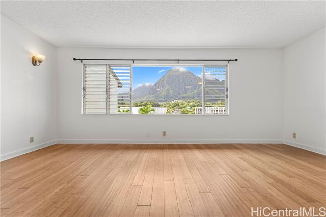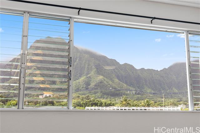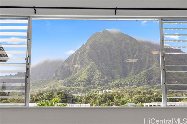 - Top floor unit with views of the lush Koolau mountains from the living room. Covered parking, storage area, playground and BBQ pits in common area and pet friendly. Close to Windward Mall, Kaneohe Bay Shopping Center, schools, bus line and easy freeway access. One or more photos have been virtually staged.