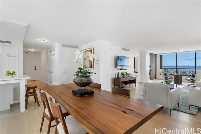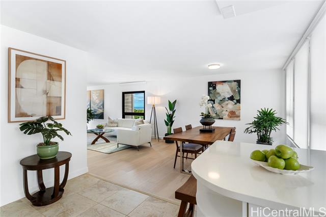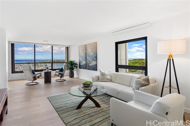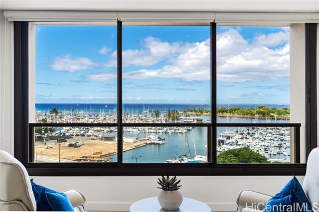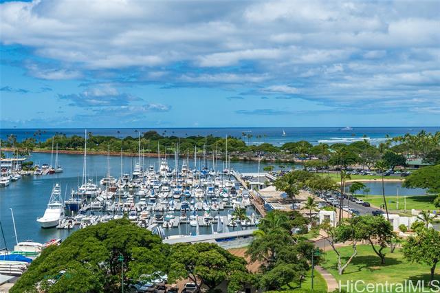- Enjoy sweeping ocean and harbor views. This two bedroom two bath apartment is freshly remodeled with an inviting color palette, new wood flooring, luxury window coverings, and air conditioning. Enjoy easy access to the coveted pool, BBQ areas, and tennis court. Offered furnished and move in ready. Spectacular year round sunsets and a great location moments from the famous Waikiki Yacht Club, world-class surf spots, and Ala Moana shopping center with Hawaii's best shopping, restaurants, and cafes.