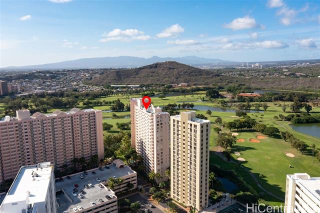- High-floor 2 bdrm unit in the highly sought after Country Club Village complex (Bldg 4). Enjoy breathtaking golf course views from your spacious lanai! Renovated kitchen featuring stainless steel appliances, a/c, washer/dryer, ceramic tile and vinyl flooring, and in unit sprinklers. PET FRIENDLY building offering security, secured entry, a pool, bbq stations, and 2 covered parking stalls (tandem).