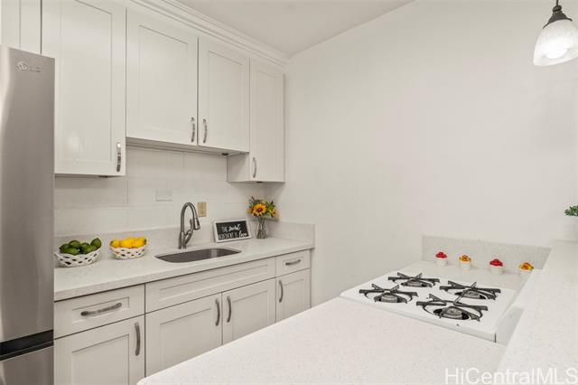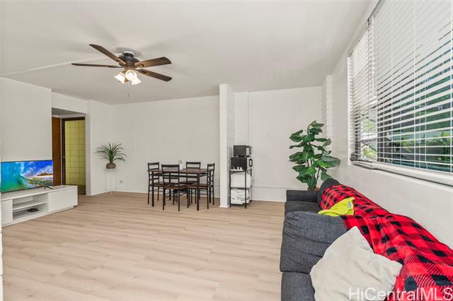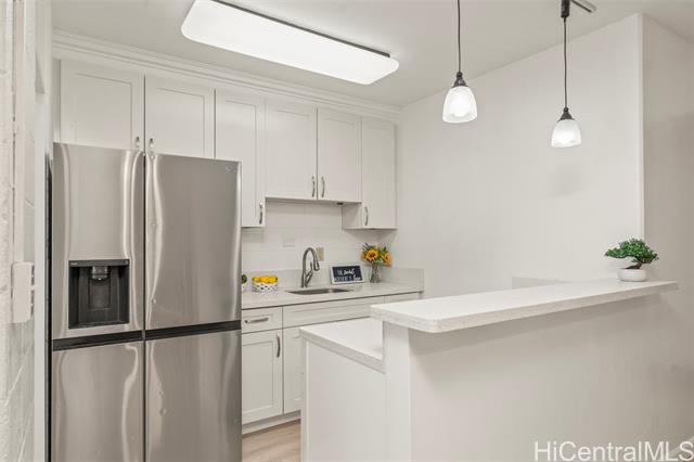 - Conveniently located on the ground floor of this short story building named Nuuanu Terrace. This is a cozy 2 bedroom and 1 bathroom unit that you can call home. Upgraded kitchen, bathroom, and flooring. You can see your 1 assigned parking stall from the window of your unit. The building does offer a community laundry area, but there is also an in unit washer/dryer. Brand new waterproof luxury vinyl plank flooring throughout the kitchen, bathroom, and living/dining areas. The bedrooms have ceramic tile. Kitchen counter tops are quartz. Full size stainless steel refrigerator is less than a year old. Brand new ceiling fan & lighting in the living area. Freshly painted interior. This is a pet friendly building. The building has solar water heating and photovoltaic. This is one of the few buildings where the maintenance fee includes water, sewer, hot water, gas, electricity, trash, and common area maintenance. Maintenance fee is $597.96 + $83.06 special assessment = total monthly $681.02