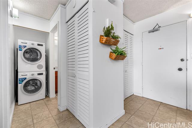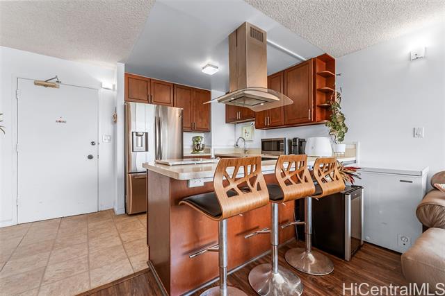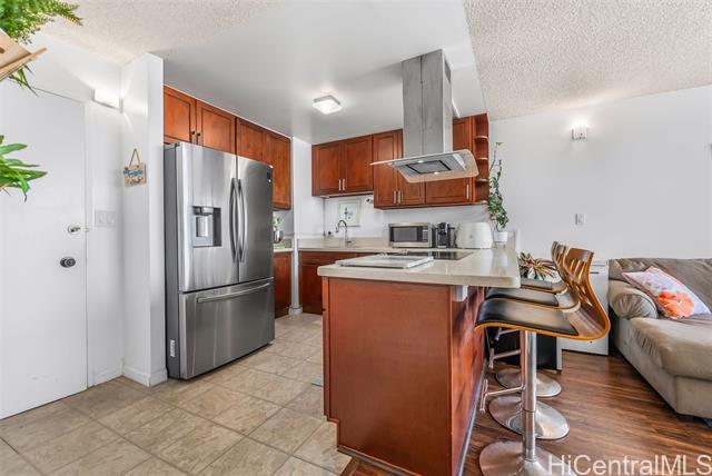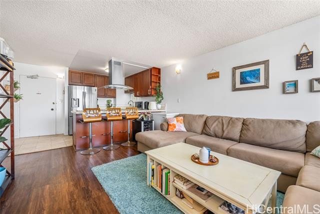 - STUNNING 1 BED, 1 BA, 1 PKG w/ in-unit W/D and Central A/C!!! This large 594 sq foot unit strikes the balance of a convenient location, while feeling like your own Oasis when you’re in the unit. Located on the preferred mauka side of the building, this unit offers stunning views of Honolulu Country Club Golf Course & the Ko’olau Range, cool tradewinds, and no direct afternoon sun. This unit is move in ready w/ quartz countertops, vinyl flooring, S/S kitchen appliances, & front load Bosch W/D. Harbour Ridge is a well maintained, secured building with 24/7 security & 16 guest parking stalls. Maintenance fee includes Electricity, Cable TV, Central A/C, Hot Water, Sewer & Water. Other conveniences include a large parking stall located near the elevators, & 2 pools onsite. You don’t want to miss this opportunity!!!