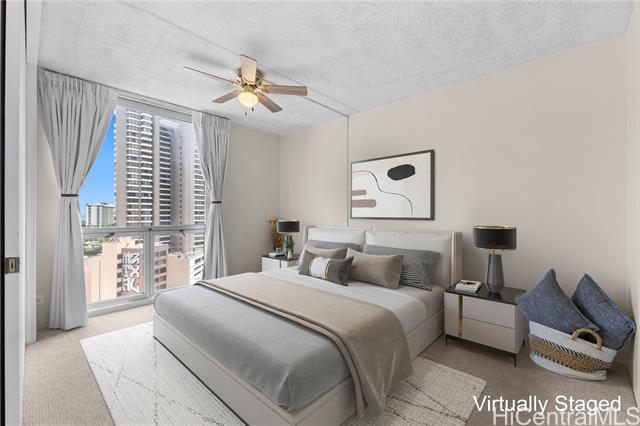 - NEW PRICE! Enjoy the beautiful views and cross breeze from this nicely maintained fee simple 2/2 with covered assigned parking. Spacious living room, panoramic lanai, washer/dryer, and storage make this a wonderful home. New carpeting, bathroom flooring, ceiling fans, light fixtures and freshly painted. Excellent location close to famous Waikiki beaches, Ala Moana Shopping Center and restaurants. Desirable pet-friendly building (please verify). The well-managed Waipuna offers lush grounds, a lovely pond and gazebo with amazing amenities including a heated pool, BBQ, fitness center, sauna, putting green, pickle-ball court, dog park, storage, large welcoming library, 24 hour security and plenty of guest parking for your visitors. Building is fully insured.