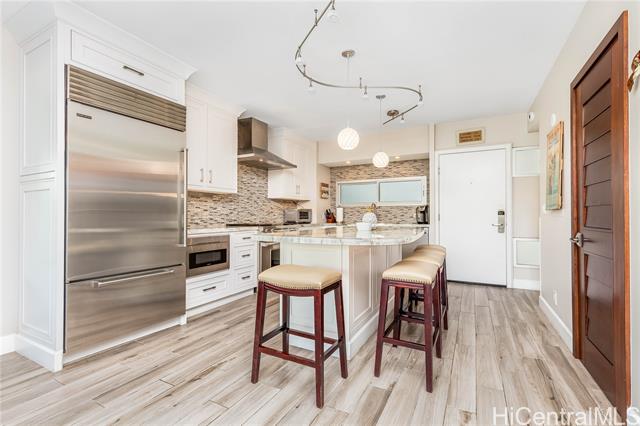 - Fully furnished corner unit at well known the only beachfront condominium in Waikiki. Being fully remodeled in 2017, the unit is in excellent condition with updated and stylish kitchen and baths. Split A/Cs, microwave, oven, refrigerator, washer, dryer and motorized curtain are equipped. Open up all the windows and enjoy a wide open view of Fort DeRussy Park. With the new elevator installed in early 2023 and the lobby renovation completed in December 2023, the building has a fresh air. A second to the beach, popular take out restaurant Steak Shack on the ground floor and all the fun in walking distance.