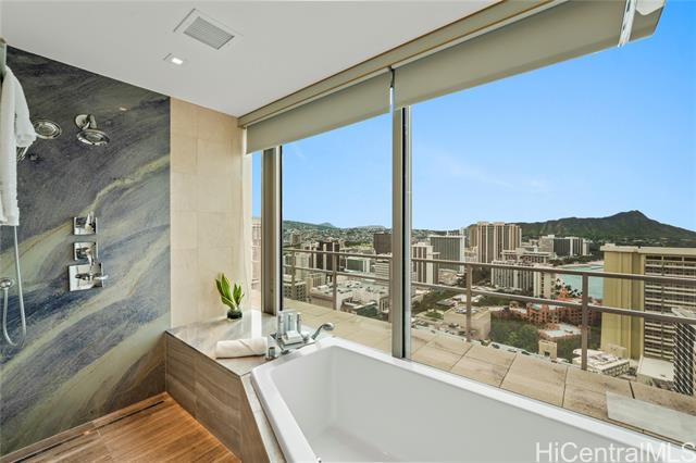- Enjoy luxury living in an incredible 180 degree view penthouse the Ka La'i Waikiki Beach, LXR Hotels & Resorts Hotel/Condo! (former Trump International Hotel Waikiki) Common area will be renovated beautifully in 2025. From the moment you enter, you are enthralled with the tasteful decor, beautiful crystal dining chandelier, large panel windows encompassing the breathtaking views, and spiral staircase. Go up the spiral staircase and enjoy spacious rooftop lanai with jacuzzi. This is the time to own an iconic luxurious property right in the vivacious park of Waikiki. Short stroll to well renowned stores, sandy beaches, and restaurants.