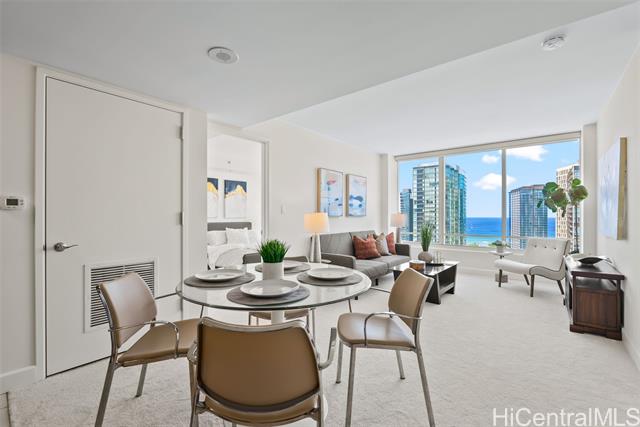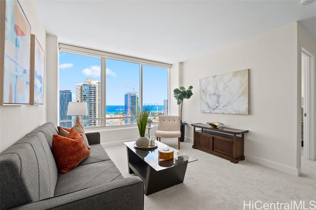 - Situated in the heart of Kaka’ako, come see this beautifully updated 2 bdrm/2 bath/2 cov’d parking unit in Pacifica Honolulu. With over 900 sq. ft. of interior living space, features include fresh int. paint, new carpet and a spacious open floor plan designed for comfortable living and entertaining. The modern kitchen boasts stainless steel appliances that opens up to the living room with expansive windows that offer maximum natural light and breathtaking ocean and city views. Enjoy resort-like amenities such as a pool & spa, movie theaters, BBQ areas, firepits, recreation area, and more! Located just minutes from Ala Moana Beach Park, Ward Village, and Ala Moana Shopping Center with world-class shopping and entertainment!