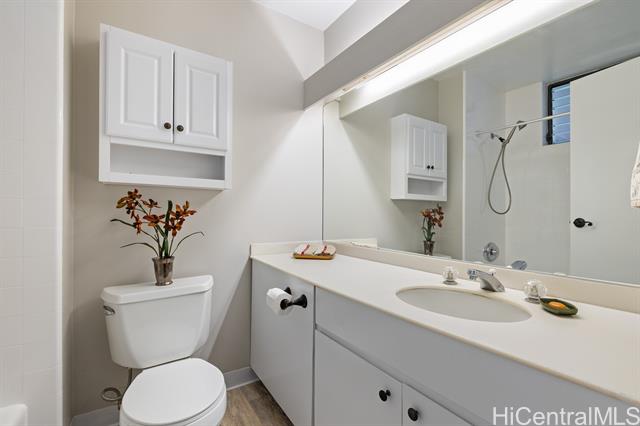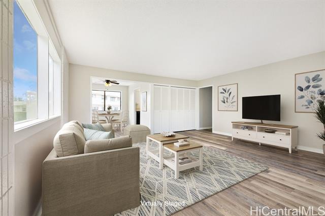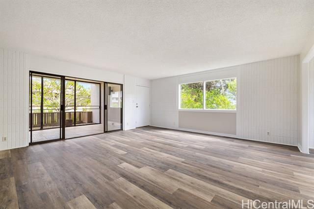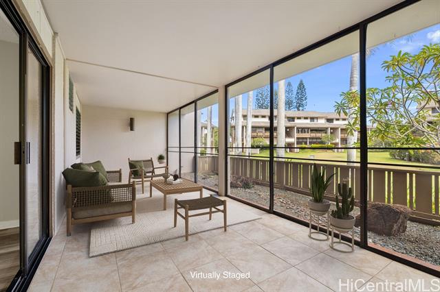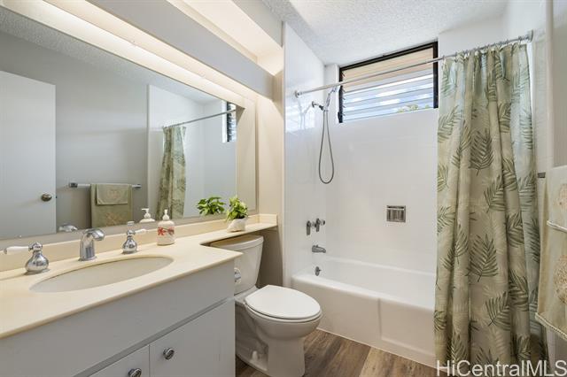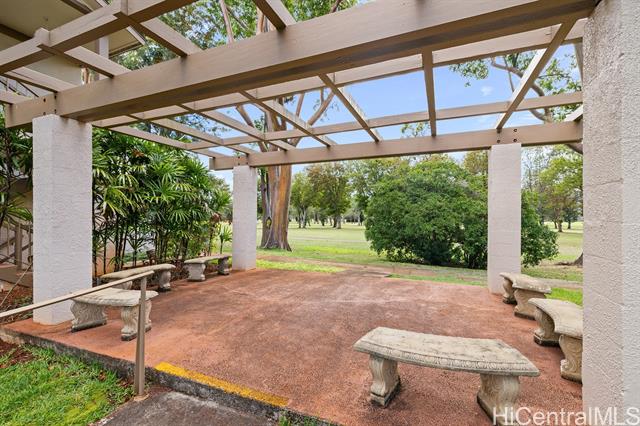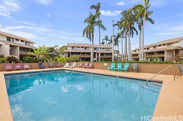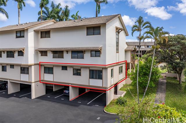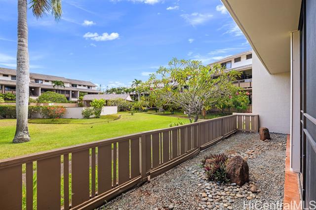 - Outstanding!!! This spacious and freshly updated single-level, first-floor townhome boasts 2 bedrooms and 2 baths with recent upgrades to include fresh paint, all-new flooring, a brand-new range and microwave, sleek quartz countertops with a new sink, reglazed tubs and surrounds, and a new water heater—ready for you to move in without a worry. The open, airy layout features a separate dining area and an expansive living room that flows effortlessly to a huge screened lanai, perfect for entertaining and indoor-outdoor living. Step outside to a fenced garden area and lush greenery views. Both bedrooms are generously sized, with the primary suite offering a walk-in closet. This end-unit gem includes two covered, side-by-side parking stalls and a large private storage room. Residents enjoy access to a beautiful swimming pool and a recreation room for gatherings or meetings, all within a highly sought-after tropical community adjacent to Mililani Golf Club and its restaurant. You'll also have membership in the Mililani Town Association that provides access to seven recreation centers and a host of amenities.