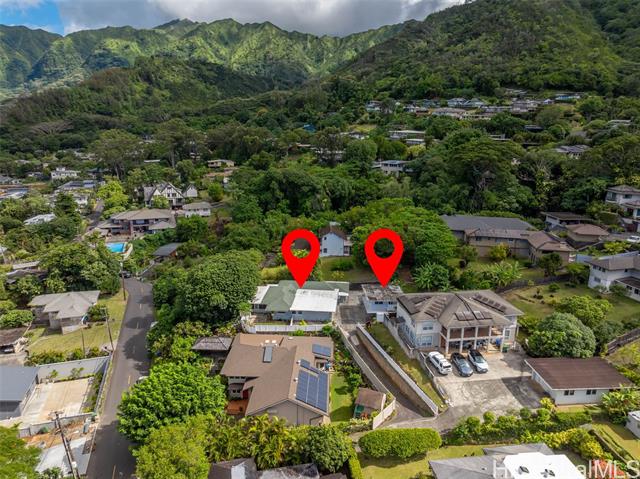 - Tucked away in LUSH Manoa Valley, this serene 3BD/2.5BA home + SEPARATE 1BD/1BA cottage offers a peaceful retreat w/a spacious entertaining area & enclosed lanai surrounded by greenery! The SEPARATE 1BD/1BA cottage sits above the GENEROUS sized carport providing views of MAJESTIC Manoa valley. A SPACIOUS storage room, off the carport is ideal for tools or hobbies. Set on 16,000+ sq ft of land w/mature fruit trees—avocado, white & strawberry guava, lychee, mango, ulu, banana, longan & lemon. Perfect for multi-generational living, investors, or anyone seeking tranquil living minutes from town!
