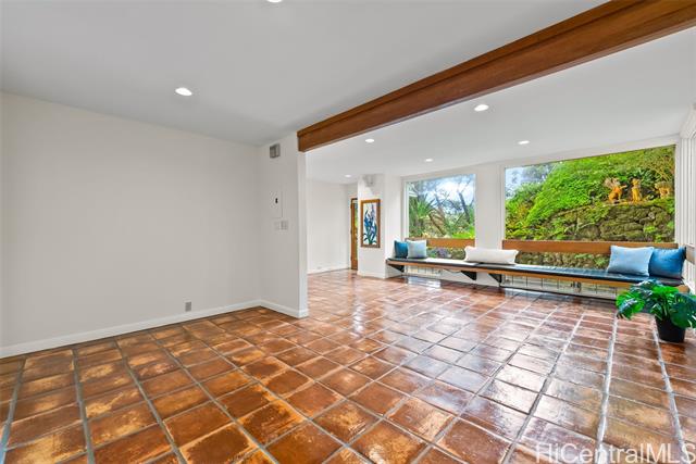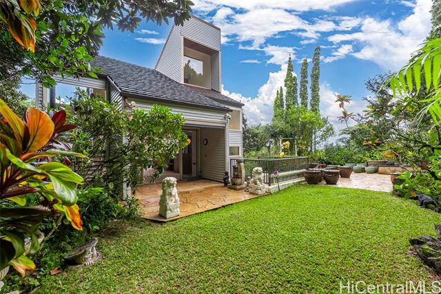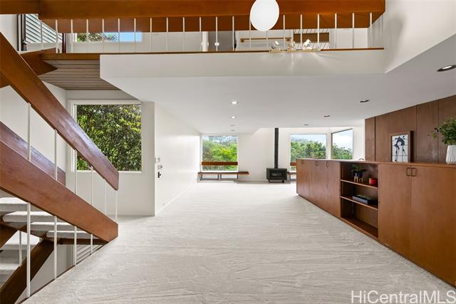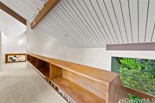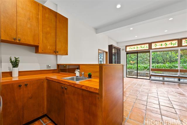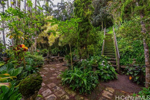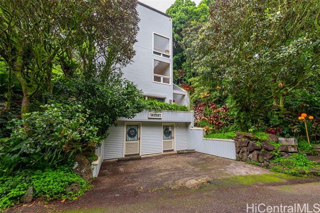- Perched above the city in a tranquil, forested enclave, this rare mid-century modern is surrounded by one of the most imaginative private gardens on the island. Featured in Honolulu Magazine and a TV show, the landscape is as much as a showcase as the home itself. This private one-of-a-kind retreat is designed by prominent architect Charles Chamberland. It offers 4 bedrooms, 3 baths across 4 levels totaling 3,000 sqft interior, with a versatile multigenerational layout. Freshly painted, new carpet and featuring soaring ceilings and expansive windows that bring the forest indoors. Beautiful open-concept kitchen with marble floors, mahogany cabinetry, butcher block counters. Loft-style primary bedroom. Set on verdant, terraced grounds with over 100 magnolia trees and tropical plantings, the mountainside garden is masterfully curated: 7 sitting areas, 4 winding trails, 2 waterfalls, ponds and a collection of fountains amid by a vibrant tapestry of staghorn ferns, anthuriums, orchids, bromeliads and blooming angel trumpets. A scenic landing with peekaboo ocean views provide peaceful moments of escape with 190 steps to the summit. 5 photos have been enhanced. Sold "as is."