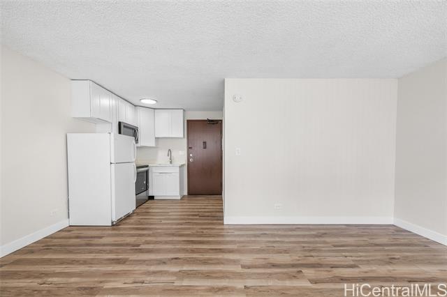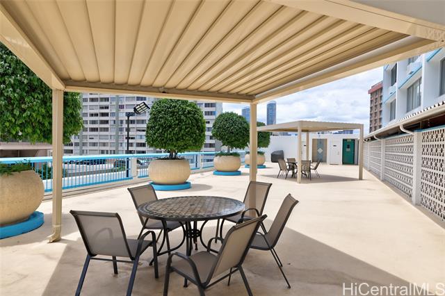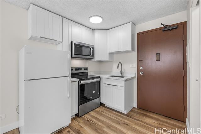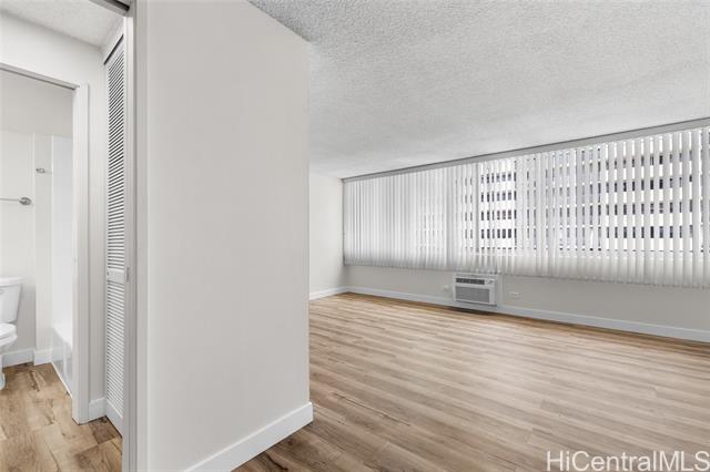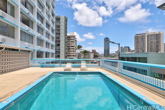 - Contemporary comfort in the heart of town! Bright, modern, and move-in ready! This beautifully renovated studio combines convenience and style with city views, A/C, fresh paint, new cabinets and countertops, reglazed tub, and vinyl plank flooring throughout. Covered parking on the 1st floor in a secured gated garage plus ample metered street parking adds ease and peace of mind! Kapiolani Terrace is a well-maintained, desirable building featuring a sparkling pool, on-site resident manager, secured entry, and laundry room with trash chute on every floor. Ideally located near Ala Moana Shopping Center, Ala Moana Beach Park, Don Quijote, Walmart, Sam’s Club, Target, an array of dining, and bus lines—everything you need is just minutes away! With 100% hurricane insurance coverage, sewer re-piping completed, and low maintenance fees, this is the perfect opportunity for a first-time buyer, second home, or investor looking for value in a prime Honolulu location!